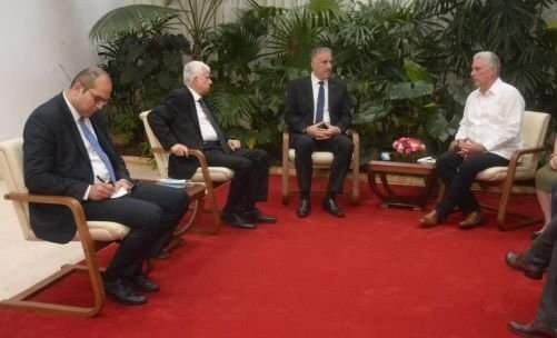 سلم المشرف العام على الإعلام الرسمي الوزير أحمد عساف، الرئيس الكوبي ميغيل دياز كانيل، رسالة من رئيس دولة فلسطين محمود عباس، تضمنت آخر التطورات المتعلقة بالقضية الفلسطينية وما يجري على الأرض من اعتداءات قوات الاحتلال الإسرائيلية على أبناء شعبنا وتحديدا في مدينة القدس والاقتحامات التي ينفذها المستوطنون للمسجد الأقصى المبارك، إضافة إلى انتهاكات الاحتلال بحق المقدسات المسيحية والإسلامية.