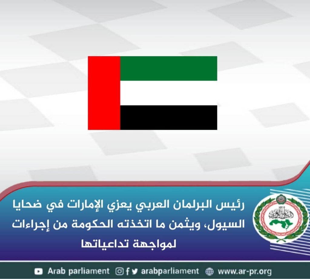 وأكد العسومي تضامن البرلمان العربي الكامل مع دولة الإمارات العربية المتحدة في هذا المُصاب الجلل، مثمنا في ذات السياق الاستجابة السريعة لحكومة الإمارات وما اتخذته من إجراءات لدعم الضحايا والمصابين وصرف تعويضات لمن لحق بهم أضرار.