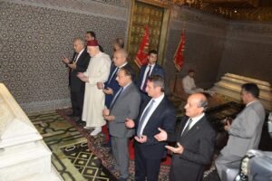 وخلال الزيارة، ترحم سيادته على روح كل من المغفور له الملك محمد الخامس، والمغفور له الملك الحسن الثاني، معربًا عن بالغ تقديره للمكانة الوطنية والتاريخية التي يحتلها الزعيمان الراحلان في وجدان الشعب المغربي.