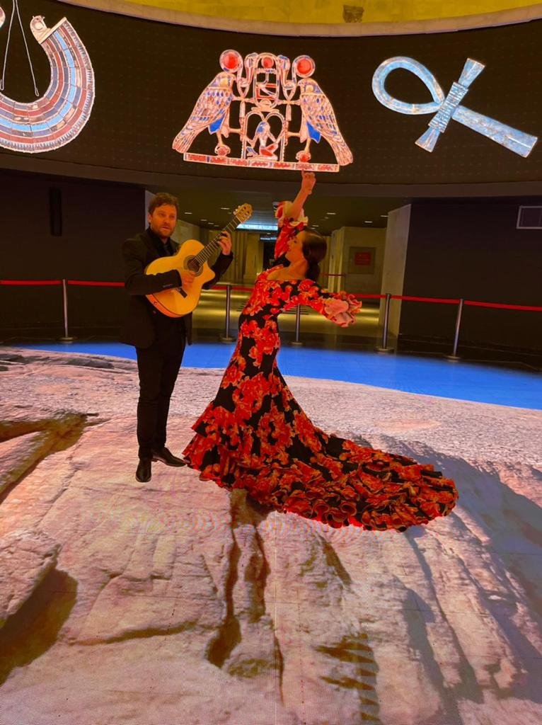 في إطار سلسة الفعاليات الثقافية والفنية التي يحرص المتحف القومى للحضارة المصرية بالفسطاط على تنظيمها للقيام بدوره كمنارة حضارية، ثقافية، تعليمية وفنية، نظم المتحف مساء أمس بالتعاون مع السفارة الإسبانية بالقاهرة أمسية فنية لعرض الفلامنكو، قدمتها الراقصة العالمية الشهيرة أنابيل فيلوسو بصحبة فرقتها.