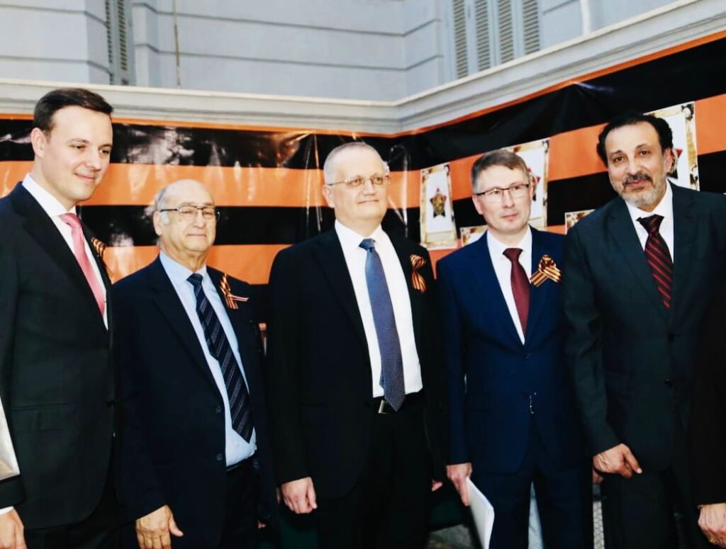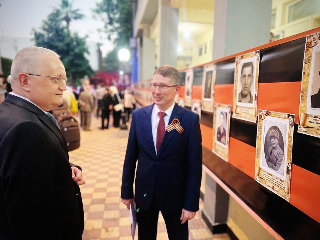 فى اطار الاحتفال بـ”يوم النصر” الذى يوافق 9 مايو من كل عام، نظم المركز الثقافى الروسى بالقاهرة حفلاً فنياً على مسرح تشايكوفسكى، بحضور كل من “جيورجى بوريسينكو” سفير روسيا الاتحادية، “سيرجى تيرنتييف” سفير بيلاروس، “ضراب الدين قاسمى” سفير دولة طاجيكستان، “منصوربيك كيليتشيف” سفير أوزبكستان، “رافاييل موفيسبيان” ممثل سفارة ارمينيا، “ابراهيم كامل” رئيس جمعية الصداقة المصرية الروسية، مراد جاتين” مدير المراكز الثقافية الروسية فى مصر، “شريف جاد” رئيس الجمعية المصرية والاتحاد العربى لخريجى الجامعات السوفيتية الروسية، “ضحى عاصى” عضو مجلس النواب، “عماد الدين حسين” عضو مجلس الشورى وحشد من الخريجين واعضاء الجالية الروسية.