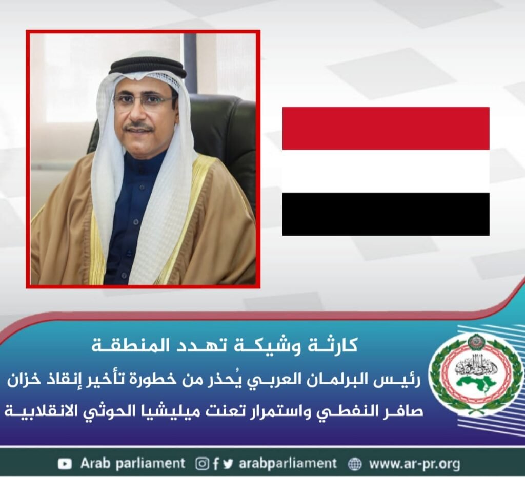 وشدد رئيس البرلمان العربي على ضرورة التحرك الدولي الفوري والعاجل بممارسة مزيد من الضغط على ميليشيا الحوثي لوقف تلاعبها بالملف واستخدامه مادة للضغط والابتزاز السياسي والتعامل معه كرهينة والسماح للفريق الأممي بالصعود للناقلة وتقييم وضعها الفني وتفريغ الناقلة، التي باتت تمثل تهديد حقيقي لحركة الملاحة الدولية .