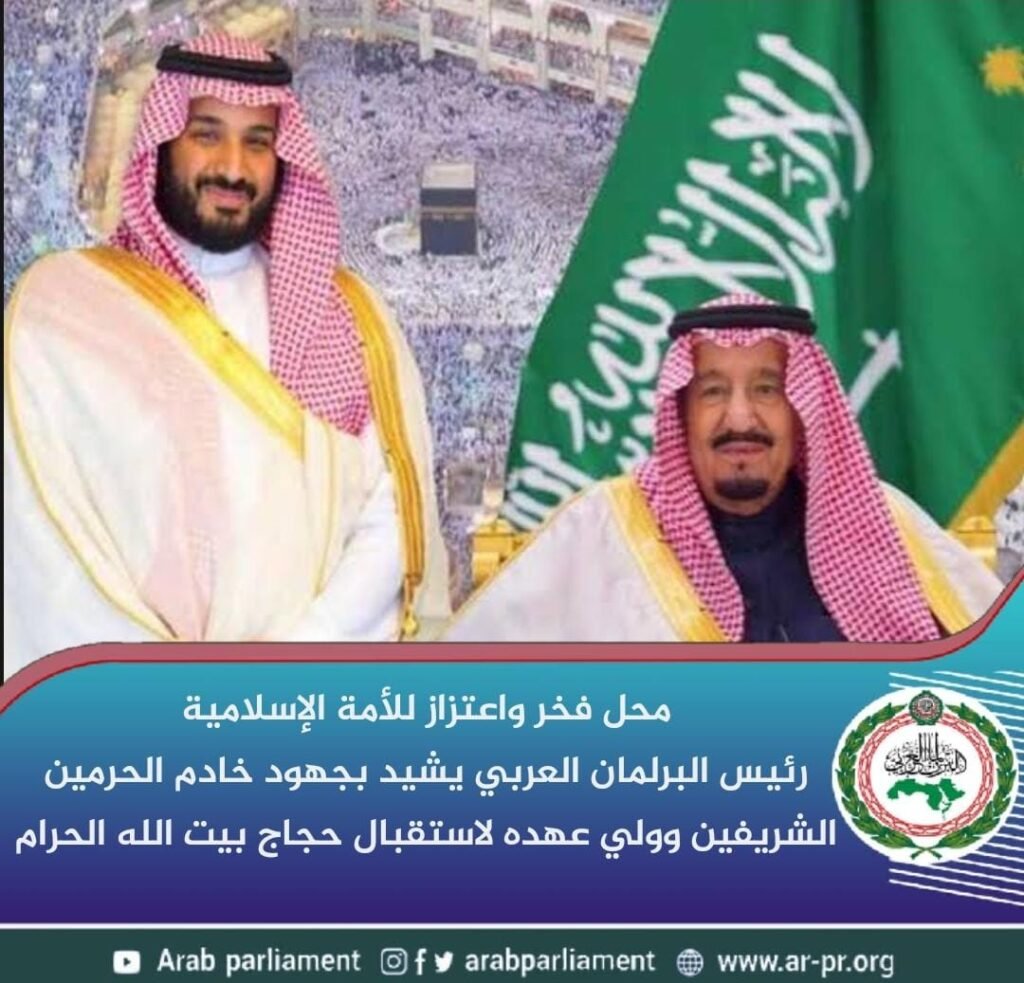 وأضاف “رئيس البرلمان العربي” أن ما تقوم به المملكة العربية السعودية من جهود حثيثة في هذا الشأن ليس أمراً جديداً عليها، لافتاً إلى أنها قدمت درسا ملهماً في إدارة الأزمات بعد موسمين استثنائيين في كل شيء بسبب جائحة كورونا، حيث أثبتت المملكة للعالم أجمع قدرتها على تجاوز أية أزمات أمام تمكين قاصدي بيت الله الحرام وتيسير مناسكهم وتوفير أقصى درجات الراحة والعناية بصحة الحجاج في ظل ظروف استثنائية صعبة.