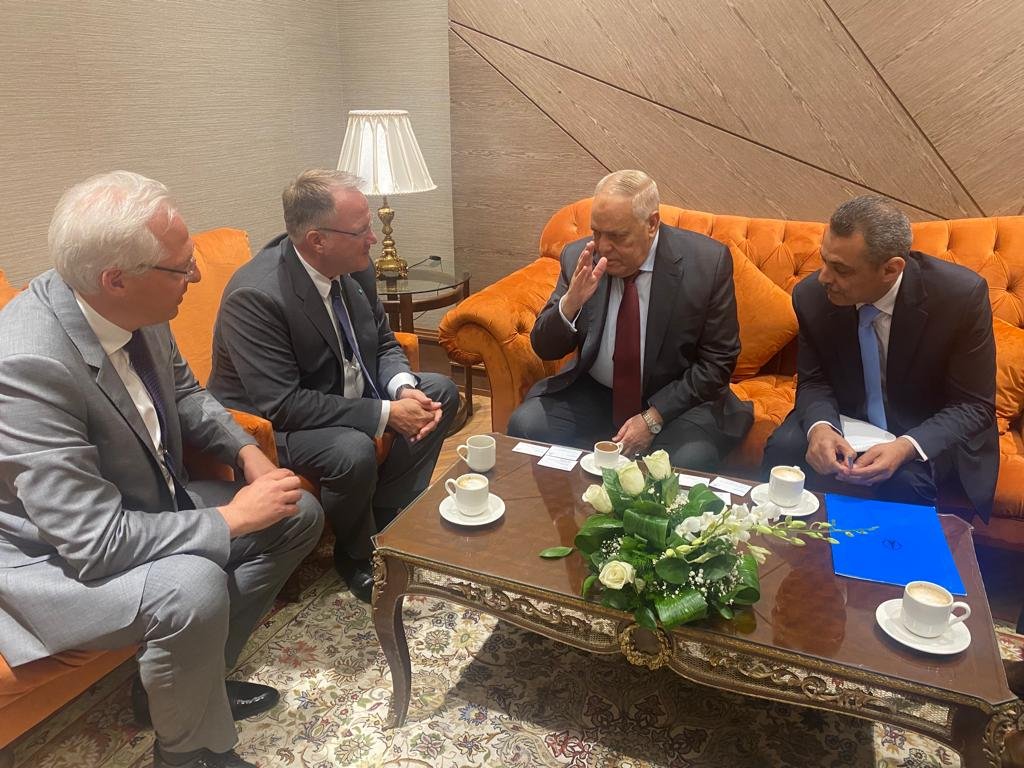 وايضا بحث التعاون مع شركة Thyssenkrupp العالمية والمتخصصة في الحلول الصناعية والهندسية المختلفة , كما تضمنت المباحثات مع السيد “أليكسيس بيلو ” رئيس القسم الإقتصادي بسفارة جمهورية ألمانيا الإتحادية بالقاهرة , وبحضور الدكتور مهندس “هاني عازر” مستشار رئيس جمهورية مصر العربية للمشروعات الهندسية والخبير المصري الدولي في العديد من مجالات الصناعة المختلفة .