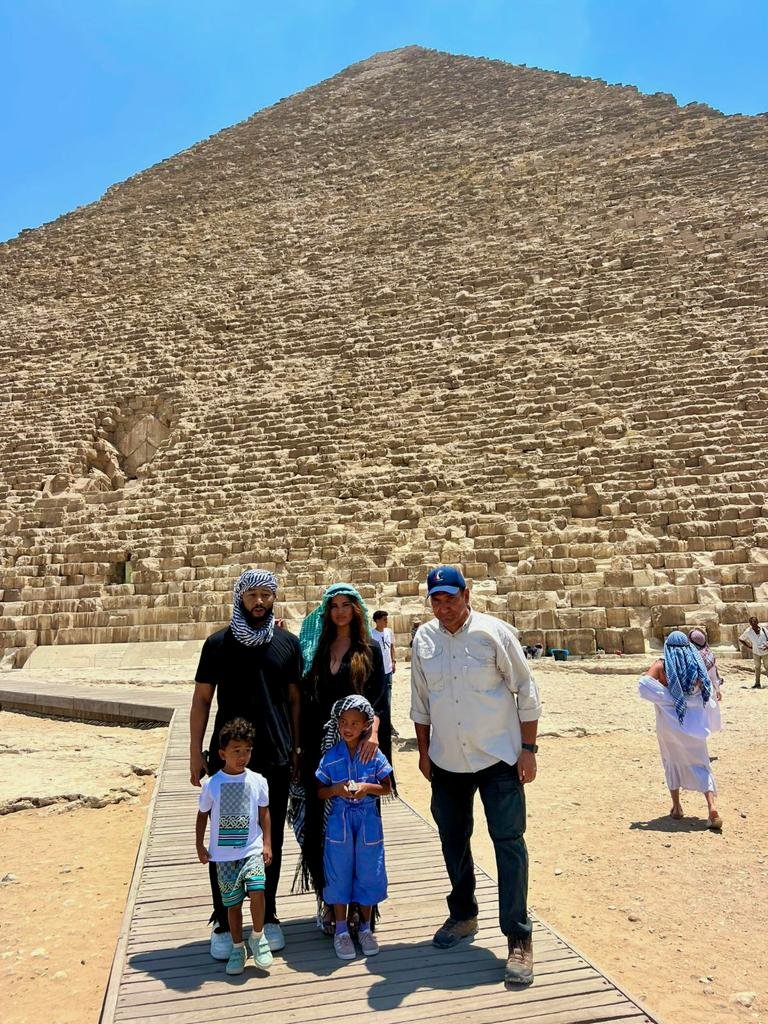 وقد حرص المطرب الأمريكي وأسرته على التقاط الصور التذكارية خلال هذه الزيارة.