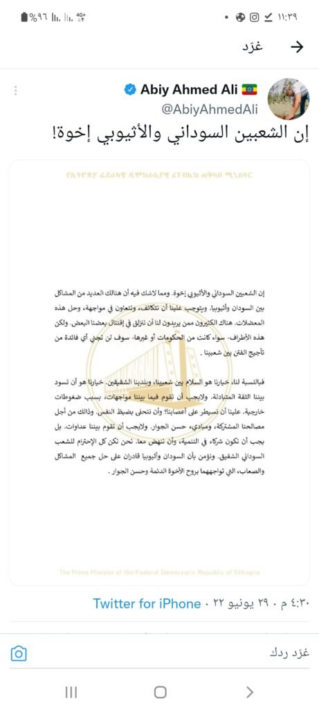 وأكد رئيس الوزراء الإثيوبي آبي أحمد على وجود “العديد من المشاكل” بين البلدين، لكنه دعا إلى “التكاتف والتعاون وحل هذه المعضلات”.