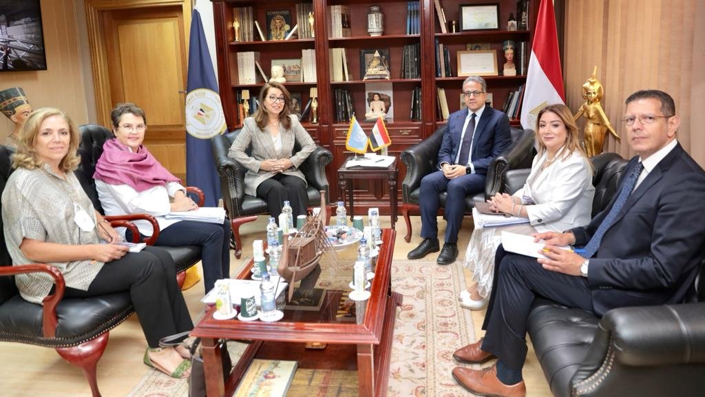 كما تم مناقشة الاستعدادات والتجهيزات المتعلقة باستضافة مصر للتجمع الدولي “مؤتمر القاهرة لحماية التراث الثقافي: إجراءات عالمية لعرقلة سلاسل الإتجار غير المشروع وحماية الممتلكات الثقافية” والمزمع انعقاده في الفترة القادمة، بالتعاون مع مكتب الأمم المتحدة للمخدرات والجريمة، ومنظمة الأمم المتحدة للتربية والعلم والثقافة (اليونسكو) ومنظمة العالم الاسلامي للتربية والعلوم والثقافة (الإسيسكو).